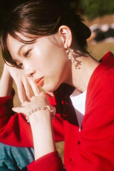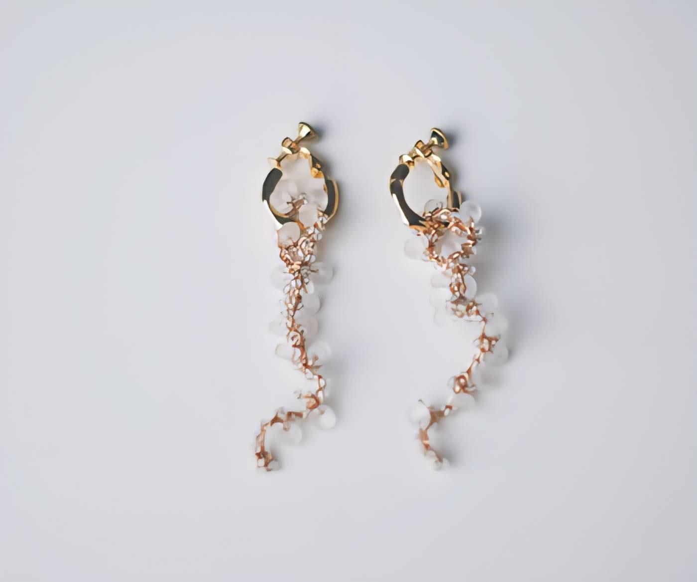 花が満開、垂れ下がる様子を表した耳飾り。