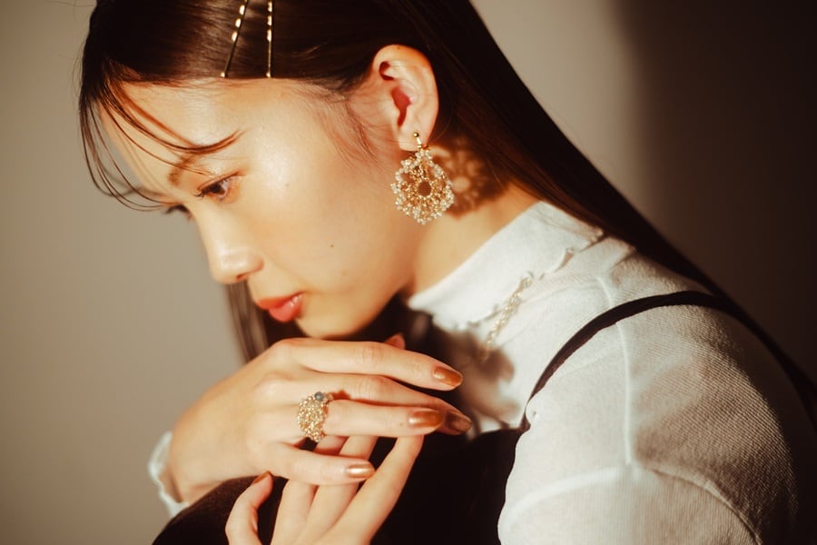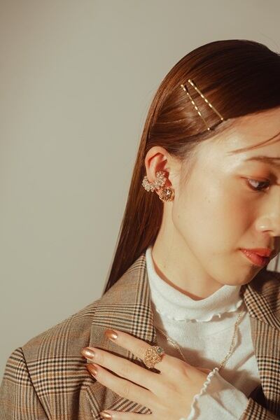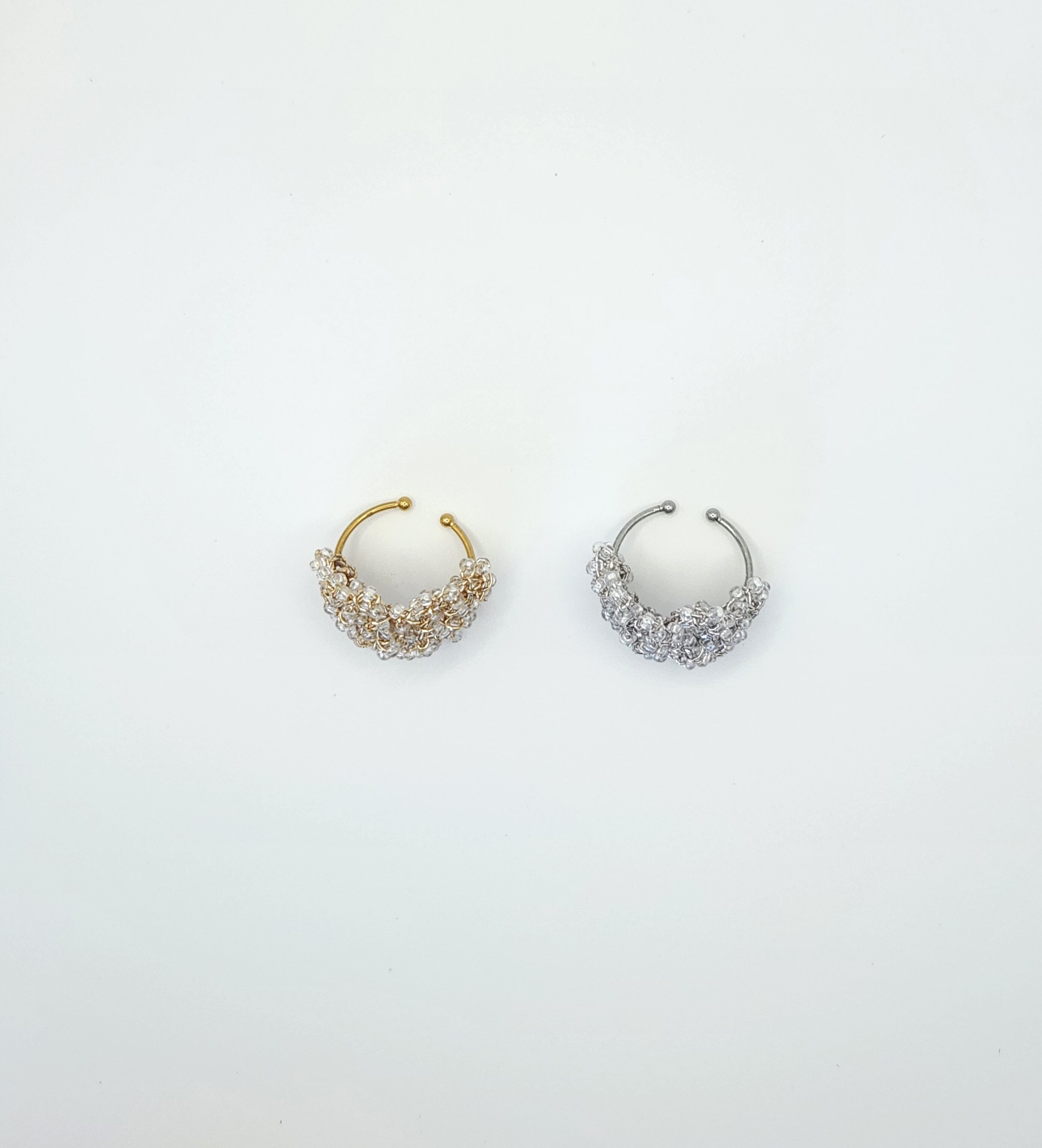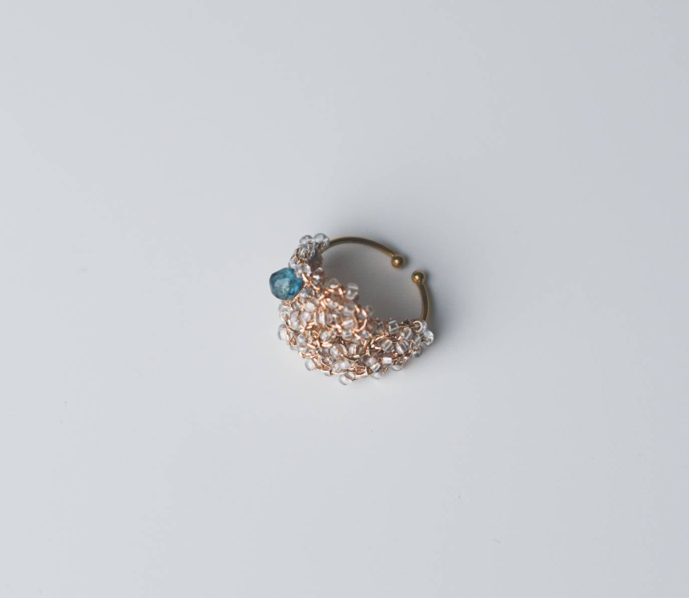 うるつやのビーズを編み込んだリング。