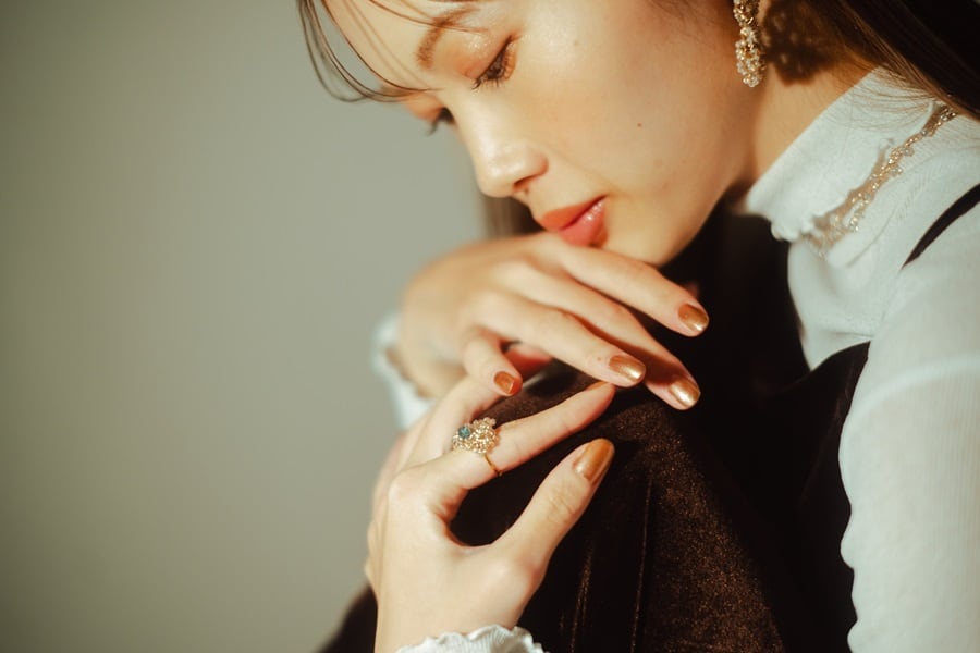 指とまるっと包み込んでくれるデザインで細く見せる効果も。