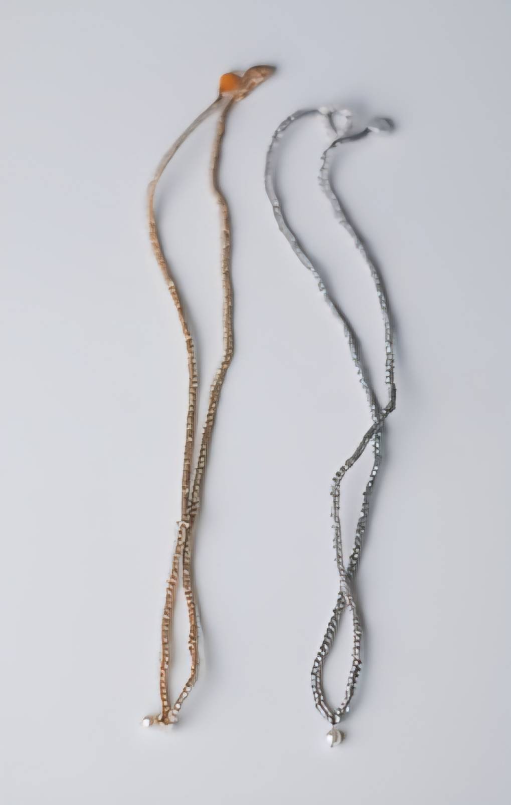 (写真のゴールドバージョンの留め具は琥珀ですが、お渡しするネックレスはシルバーと同じ淡水パールです)